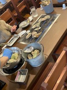 続きまして本日のメインでもあります、入善牡蠣ノ星で90分牡蠣の食べ放題をお楽しみいただきました。入善牡蠣ノ星には海洋深層水かけ流しの水槽を設けておりますため、新鮮な牡蠣を味わうことができます。今回は焼き牡蠣・蒸し牡蠣の食べ放題のほかに生牡蠣、カキフライ、牡蠣の炊き込みご飯にお味噌汁と大変豪華で皆様にはおなかいっぱいになるまでご満喫いただきました!!