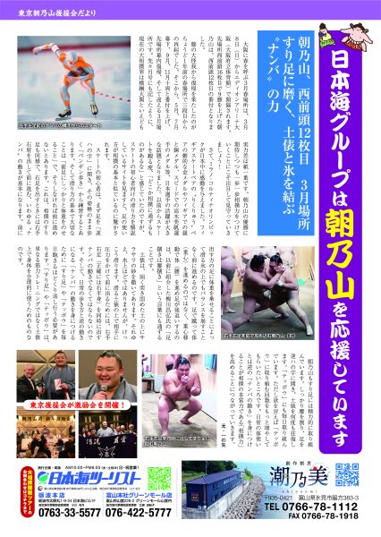 毎月、朝乃山・高砂部屋の力士達の活躍をお伝えする「高砂部屋だより」を発行しています。
