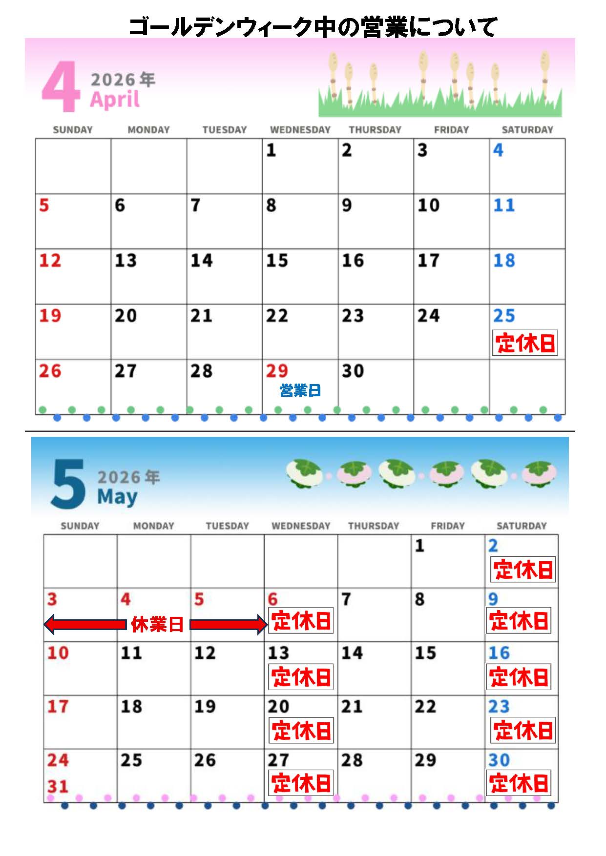 *4・5月の営業日・休業日について*